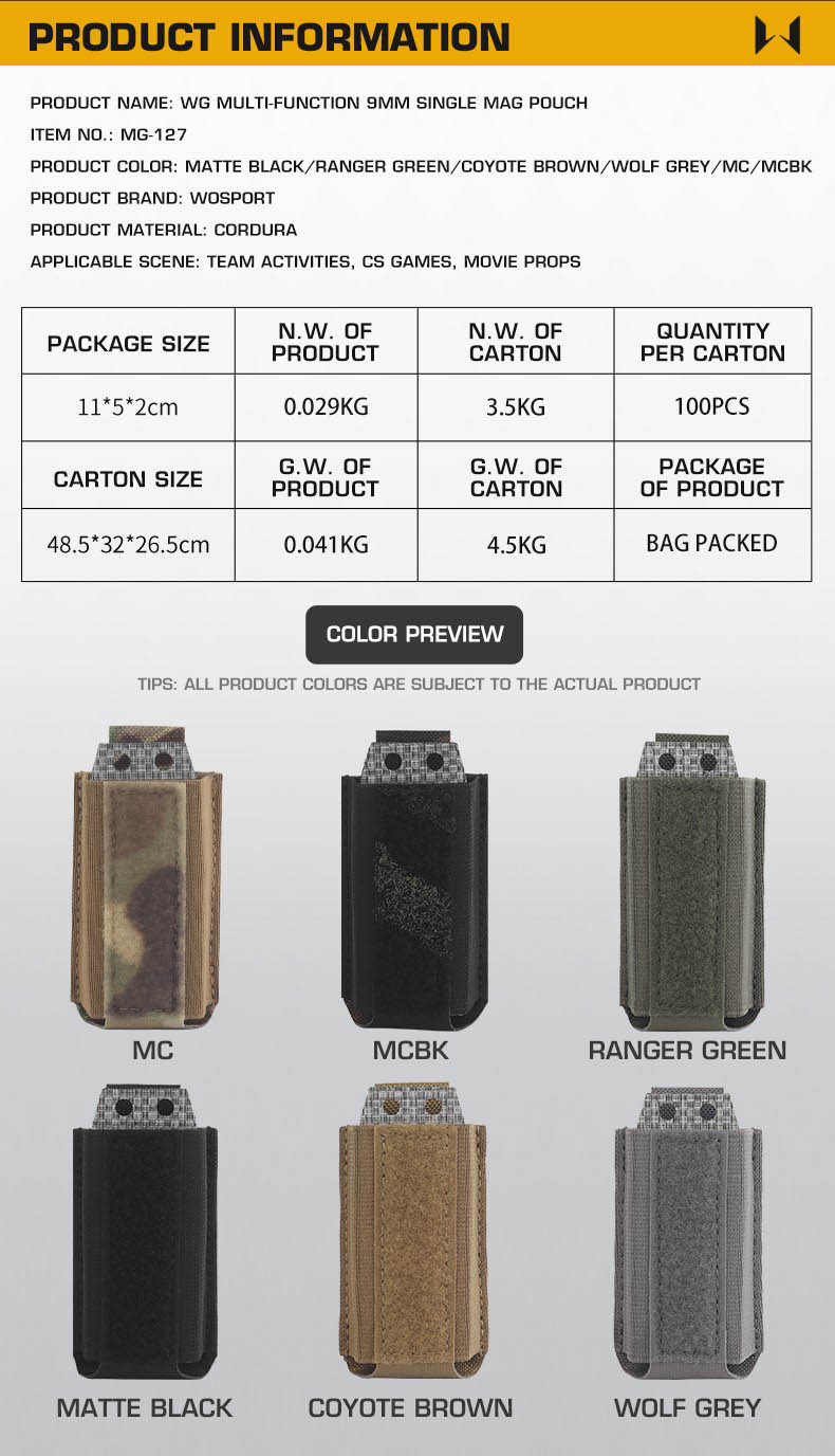 WOSPORT WG MULTIFUNCTION 9MM SINGLE MAG POUCH [WST-MG-127]