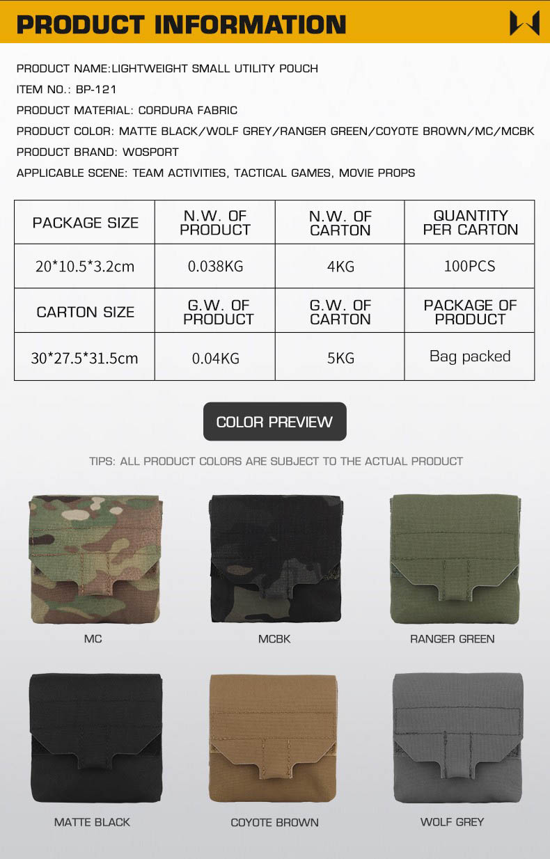 WOSPORT LIGHTWEIGHT SMALL UTILITY POUCH [WST-BP-121]