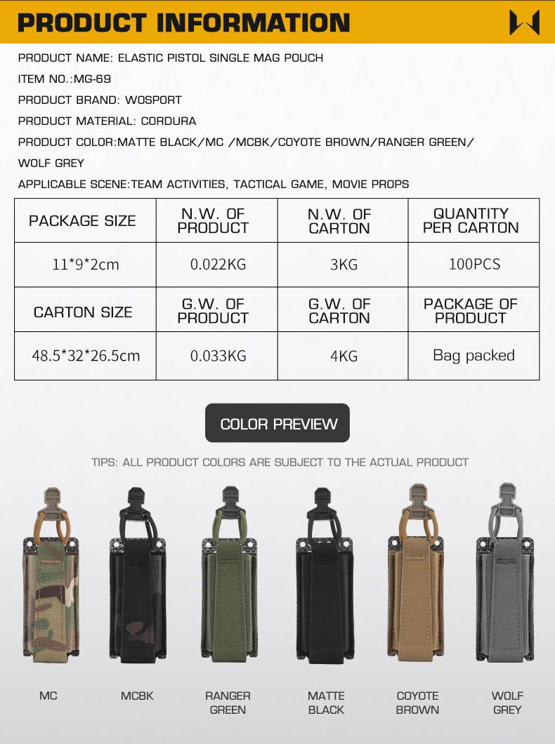 WOSPORT ELASTIC PISTOL SINGLE MAG POUCH [WST-MG-69]