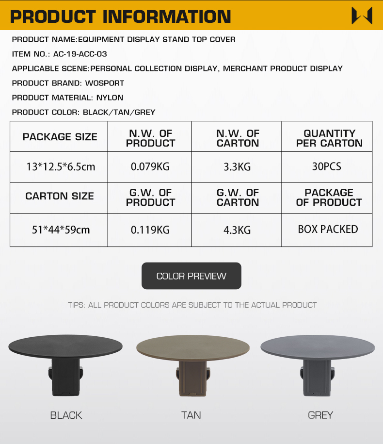 WOSPORT EQUIPMENT DISPLAY STAND TOP COVER [WST-AC-19-ACC-03]