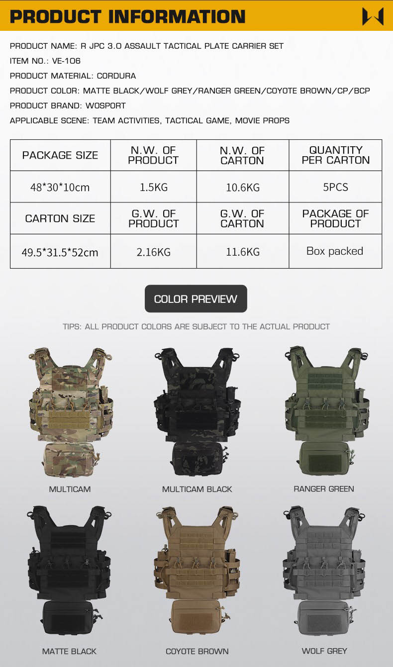 WOSPORT R SERIES JPC 3.0 ASSAULT TACTICAL PLATE CARRIER SET [WST-VE-106]