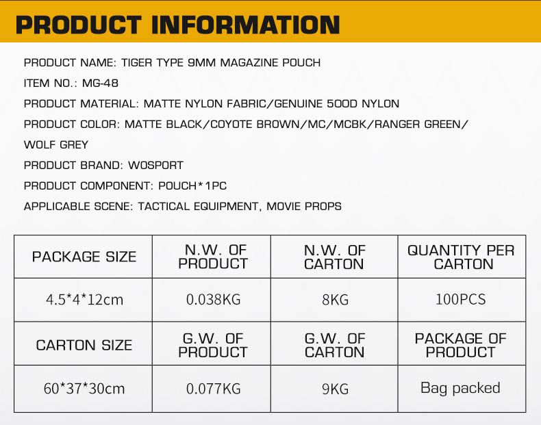 WOSPORT TIGER TYPE 9MM MAGAZINE POUCH [WST-MG-48]